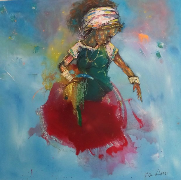 La imagen principal pertenece a Ima Amu y se titula Antes de la llegada del hombre blanco. Esa y todos los trabajos en los interiores fueron tomados del acervo del Museum of Modern African Art (MoMAA).